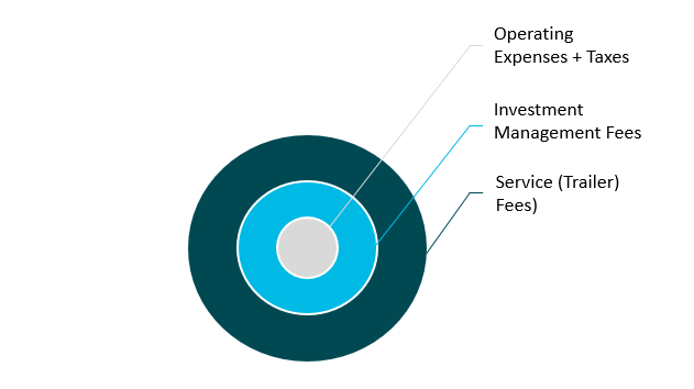 We charge a discretionary fee that covers both service and the cost of investment management, and then pass along a small additional fee to cover fund administration and operating costs.