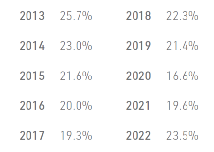 Figure 2: Toromont Industries Return on Equity for the Past 10 Years (2013-2022)