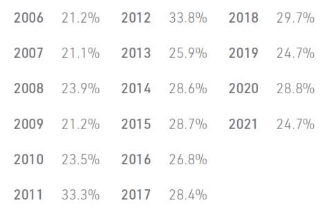 Figure 4: Constellation Software Return on Invested Capital Since IPO (2006-2022)