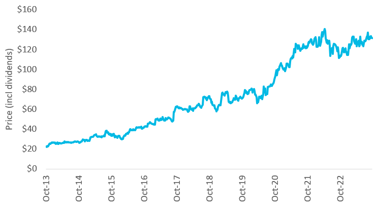 Figure 1: Stock Performance of Toromont Industries, 2013-2023 (Total Return including Dividends)