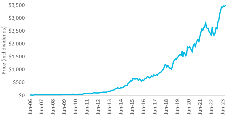 Figure 3: Stock Performance of Constellation Software Since IPO (Total Return including Dividends)