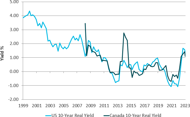 In fixed income, the market currently reflects an expectation that central banks will begin cutting interest rates again as early as late 2023. We think this premature. Similarly, we think the Bank of Canada’s recent forecast of a return to 2% inflation by year-end is overly optimistic. If inflation does remain elevated, it will restrict the Bank of Canada’s ability to cut interest rates if the economy falls into recession.