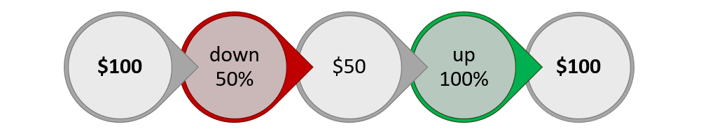 What is weird math? If you lose 33% of the value of your portfolio, you need to earn a 50% return to get back to your starting point. Down 50%? You need to double it, or grow 100%!