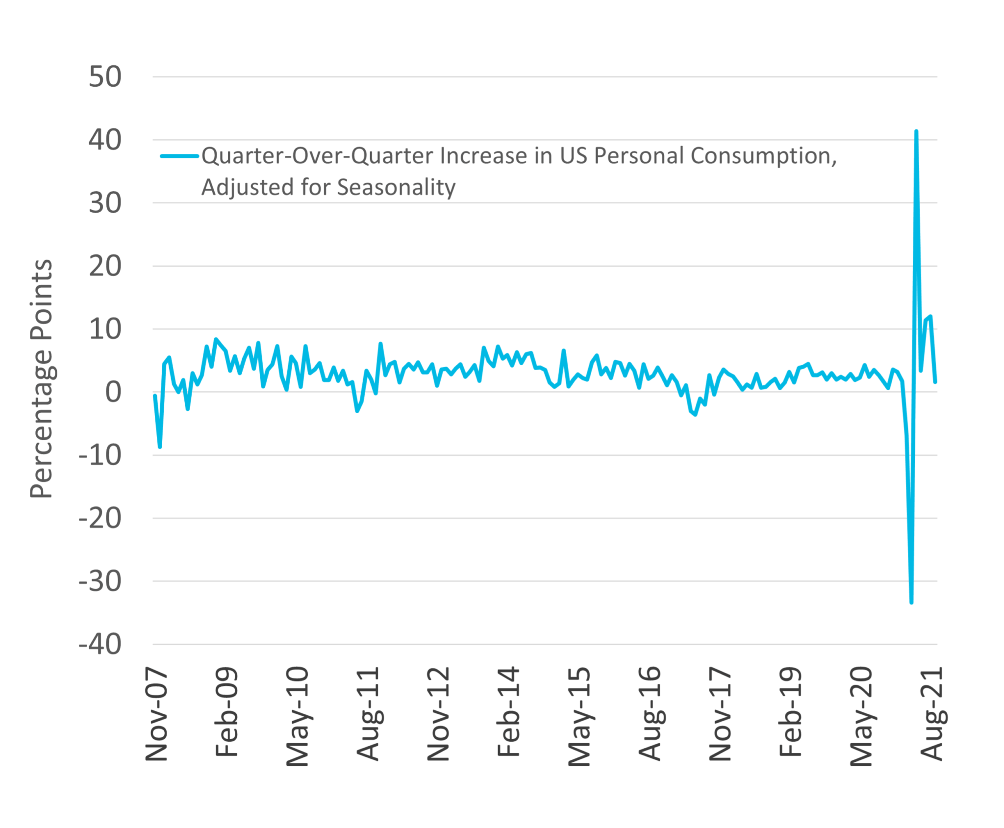 Figure 1: US Personal Consumption Expenditures, November 30, 2007 – September 30, 2021