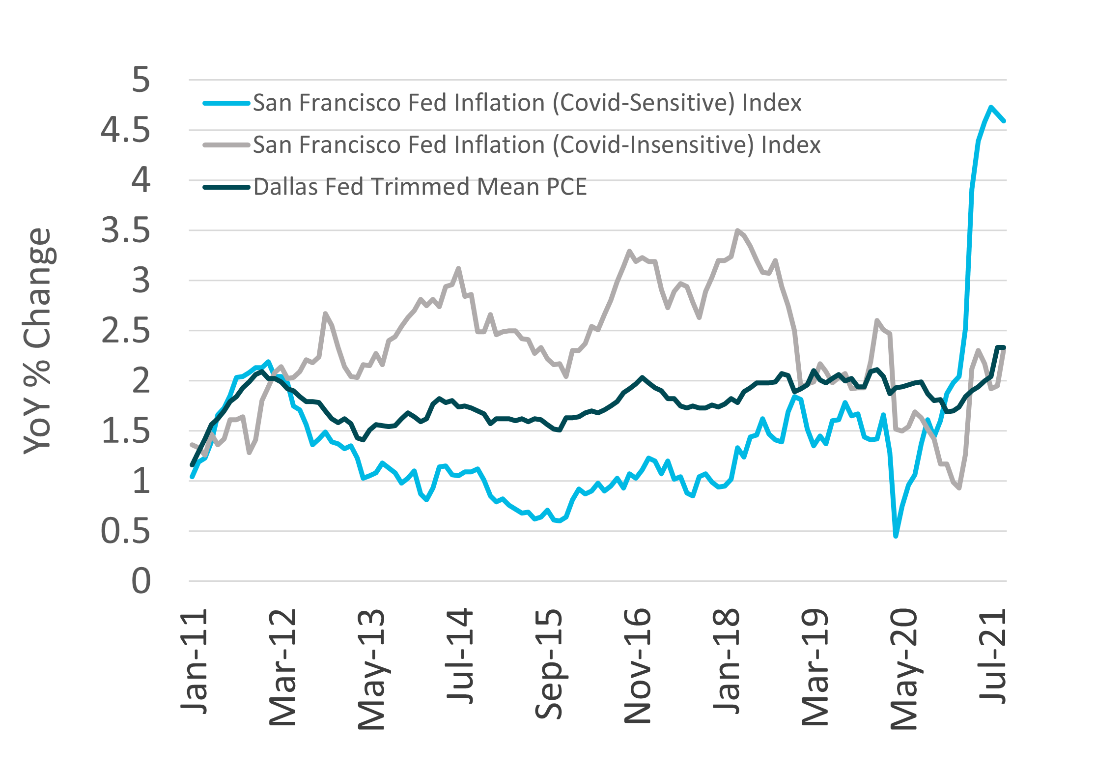 Figure 4: San Francisco and Dallas Fed Inflation Measures Remove Short-Term Noise, Jan 31, 2011 – September 30, 2021